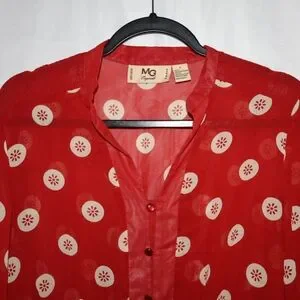 Stylish and vibrant red button-up top by MG Originals. Perfect for any occasion, this top features a unique pattern and comfortable fit. Large. NWOT.