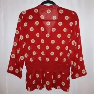 MG Originals Red Sheer Polka Dot Peplum Blouse With 3/4 Sleeves. Large. NWOT.