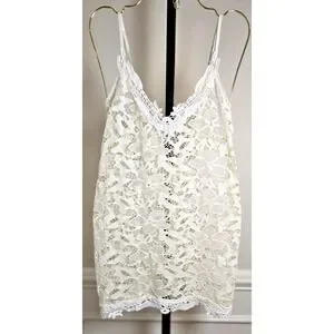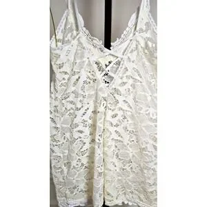 Condition of Item: EUC, review item condition details and photos before purchase. This is a gorgeous ivory lace camisole babydoll nightgown has white lace applique borders and criss cross elastic straps in the back. You don't see this kind of quality very often. It is great for a bride or just a romantic evening.