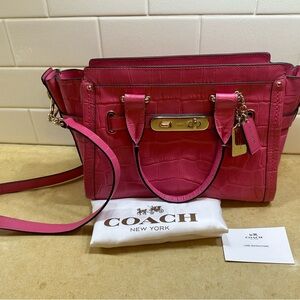 Brand new, never used. Authentic Coach Swagger 27 Dahlia Pink with croc-embossed texture.