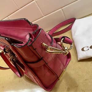 NWT Coach Swagger 27 Dahlia Pink Croc-Embossed crossbody purse/satchel.