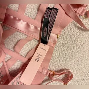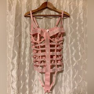 Victoria's Secret Bling Rhinestone Strappy Caged Bondage Teddy Light Pink NWT