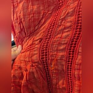 Capture a vibrant, breezy aesthetic with this charming coral peplum blouse. The textured plaid fabric offers a subtle visual interest, while the V-neckline and delicate crochet detailing on the sleeves add a touch of feminine flair. Cinched at the waist with a self-tie belt, this top creates a flattering silhouette that moves beautifully with you. Perfect for a casual brunch, a relaxed day at the beach, or a weekend getaway.
