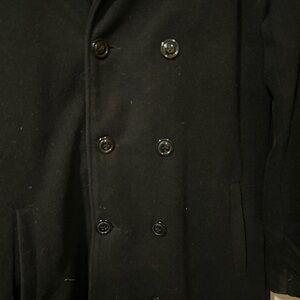 Step out in style with this elegant black double-breasted pea coat. Designed for the modern man, it combines warmth with timeless sophistication. Runs on the small side so my husband is a large and it fits him well, though I’ve never seen him wear it which is why it’s listed!
