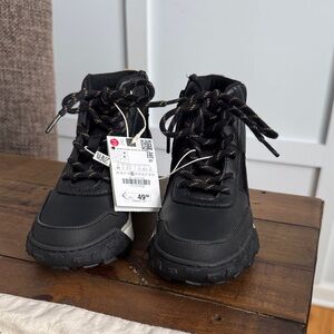 Zara Boys Black High-Top Boots with Tan Accents Size 2 NWT