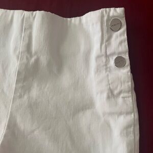 Elegant white shorts with scalloped edges. Features side button accents. Ideal for summer wear.