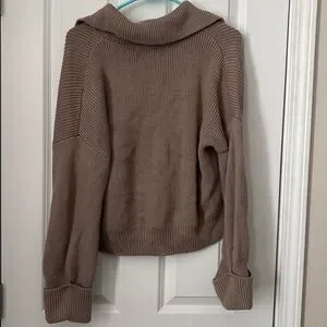 Taupe/Brown Cardigan with Collar and full button up.