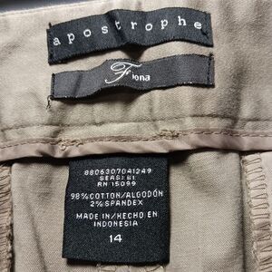 Apostrophe Fiona Women's 14 Tan Trouser Pants. 2 Front Side Pocket, 2 Back