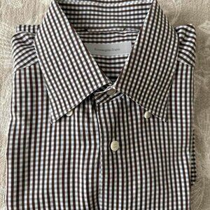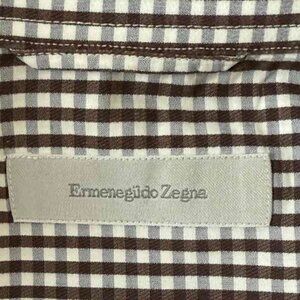 Ermenegildo Zegna Men’s Button Shirt Brown Check Cotton Long Sleeve Sz L