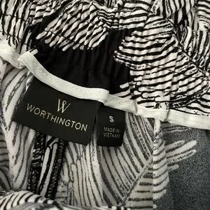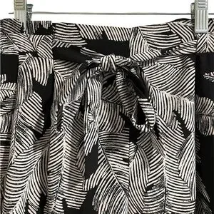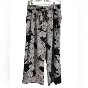 Black and White Flowy Capri Leaf Print Pants Size Small. Tie detail in front and elastic in back for a little stretch! These are in great condition and come from a smoke-free, pet-free home. Worthington brand.