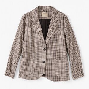 Effortless We The Free by Free People plaid blazer in a relaxed, oversized silhouette. Features a classic notched lapel, two-button front closure, front patch pockets, and buttoned cuffs. The neutral plaid pattern makes it easy to dress up or down — perfect layered over tees, sweaters, or dresses.