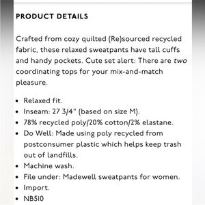 Madewell Re(Sourced) Quilted Jogger Sweatpants Medium Faded Mauve C2