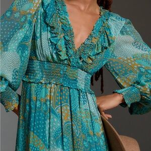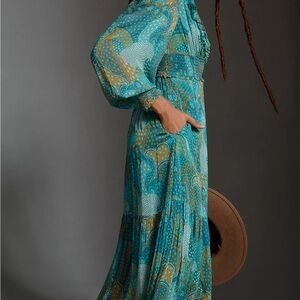 Anthropologie Odetta Ruffled V-Neck Maxi Dress