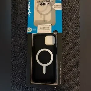 New! Speck iphone 15 Magsafe Candyshell Grip Case in White with Black Trim