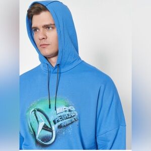 Loose fit, Cross-over hood with drawcord, Ribbed cuffs and hem, Mercedes-AMG Petronas Motorsport F1 graphic on front, Mercedes-AMG Petronas Motorsport F1 wording at right sleeve, 68% cotton, 32% polyester