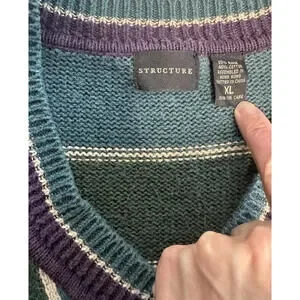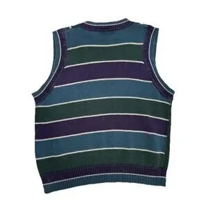 Vintage Structure Sweater Vest Mens L Blue Green Purple 90s Stripe V Neck Preppy