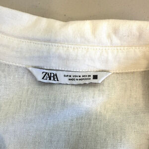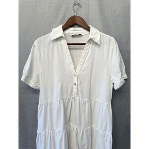 Zara Linen Mini Dress Women Size M White Tiered Beachy Coastal
