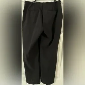 Luxuriously smooth black fabric straight leg pants with hidden elastic waist and side pockets by Rachel Zoe. Beautifully seamed nylon, polyester and spandex fabric. Waist measures 30”, rise is 12”, inseam is 27”, length is 38”. Inside of pants have stitch witchery hemming residue but not visible from outside. Priced very low accordingly. Gorgeous dress pants!