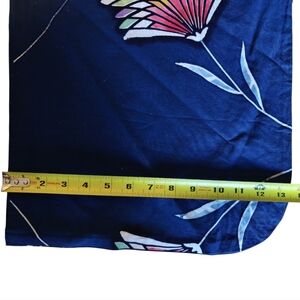 Blue unisex one size kimono; blue with multicoloured lotus flower design and hand stitching. Excellent pre-loved condition; no sizing or fabric tags.