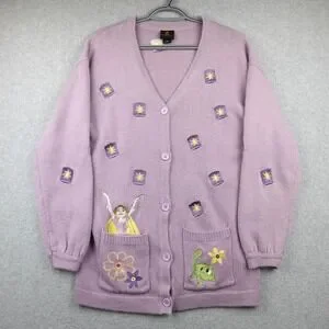 Disney Tangled Rapunzel Pascal Lanterns Sweater Women's SM Purple Embroidered