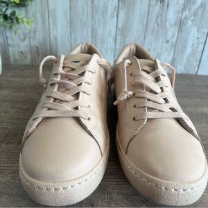 Stylish tan sneakers with lace-up design. Comfortable and versatile for everyday wear. The color is bone which is a neutral tan with a hint of pink to it. Lightly worn. Size 8