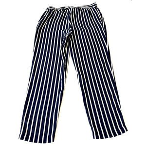J Crew Women's Pull-On Cotton Drawstring Pant Size L Blue Striped Pockets Beach