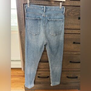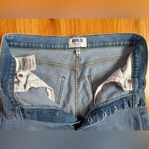 Stylish high rise jeans by Agolde. Light blue denim, with distressed detail. Perfect for casual wear.