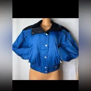Stylish and comfortable women's blue jacket, perfect for any occasion. Super simple cozy blue and black waterproof button up and full zip ski jacket. SIZE:s/m DIMENSIONS APROX pit to pit:22 length:20 OPEN TO OFFERS! Mannequin measurements aprox