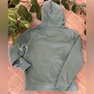Cozy Carhartt hoodie with drawstring hood. Features a front pocket. Made with Rain Defender technology. Sage/teal green color