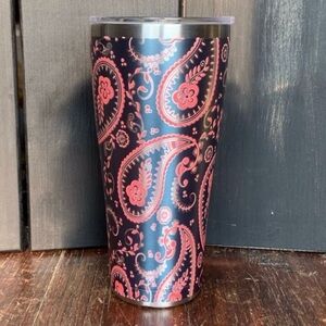 Triple-wall insulated stainless steel tumbler with slider lid.