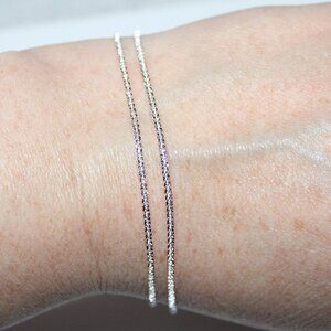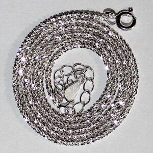 Necklace is light weight and measures 17 inches length and 1mm wide.
