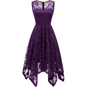 Women's Grape Handkerchief Hem Lace Formal Fancy Prom Cocktail Party Dresses