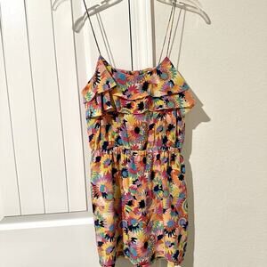 Tibi Colorful Floral Ruffles Silk Boho Romper Sz 2 Strappy Summer Vacay Festival