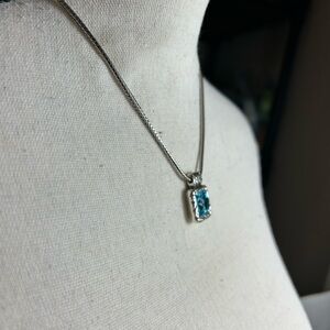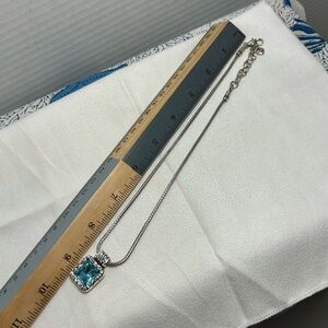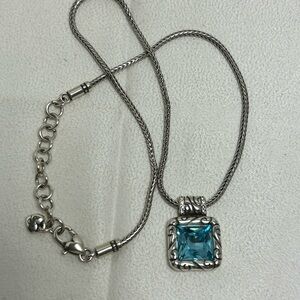 Brighton Regina Necklace Square Blue Crystal Pendant Silver Plated 17" & Tin