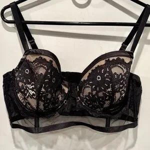 Torrid Curve Black Floral Lace Nude Full Coverage Balconette Bra NWOT