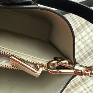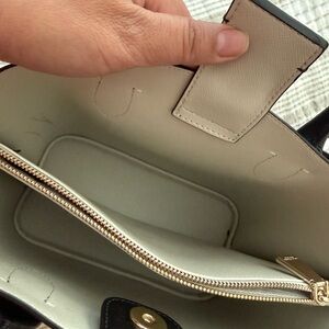 Used in great condition. With pen mark inside- pls refer to picture. Inside compartment with middle divider that does not reach bottom of bag. Great small carry.