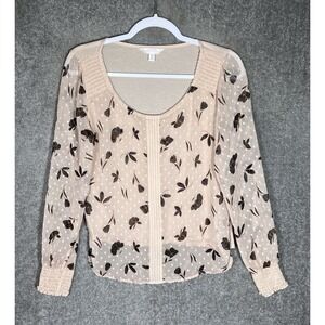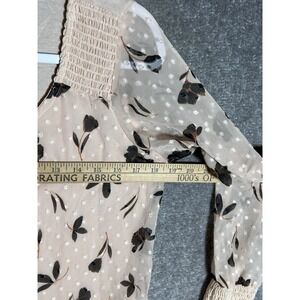 Lauren Conrad Top Womens Sz Small Swiss Dot Floral Sheer Puff Sleeves Scoop Neck