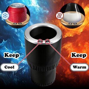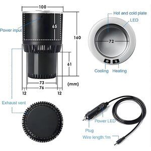 HEATING AND COOLING - Keep your beverage cool or coffee hot in 10 minutes. Two press buttons, red LED light for HOT mode , heats up to 140 , blue one for COLD mode , coolest at 21