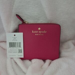NWT Kate Spade Saffiano Pink Ruby Small Zip Fold Wallet