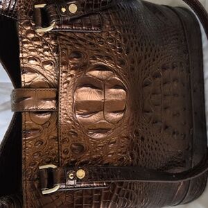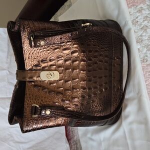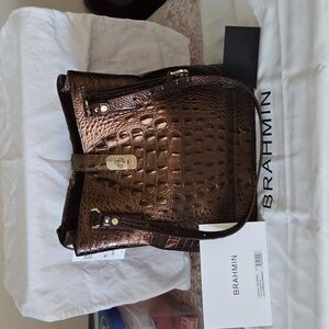 BRAHMIN FIORA SHOULDER/BUCKET BAG IN GANACHE OMBRE MELBOURNE GENUINE CROC EMBOSSED LEATHER. NWT.