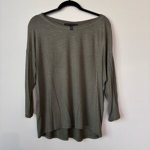 Chic olive long sleeve top. Soft fabric with a relaxed fit. Ideal for versatile styling. This is a White House Black Market relaxed blouse with 3/4 sleeves in olive army green