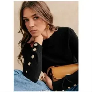 Sézane Paulo Jumper Pullover Sweater Merino Wool in Black SHRUNKEN
