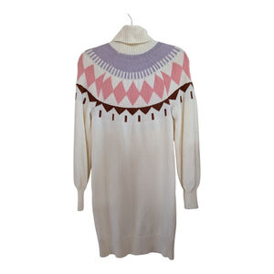Free Assembly Cream Fair Isle Women’s Sweater Dress Long Sleeve Sz Small