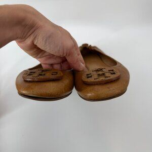 Tory Burch Women's Casual Shoes Reva Flat Tan Logo Leather Size 10