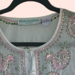 Graham Kandiah NWOT Elegant White Green and Pink Embroidered beaded Tunic Medium