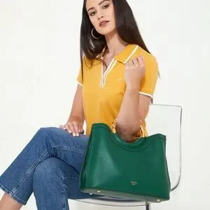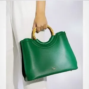Brand New Dune Distinguish Bamboo Handle Satchel Green Large