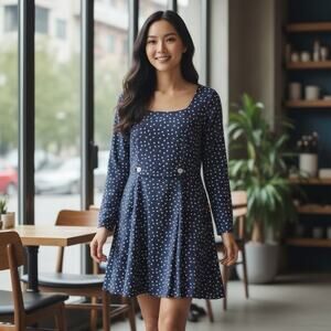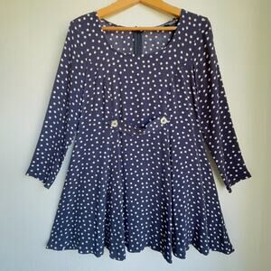 Betsey Johnson Navy White Polka Dot Dress Long Sleeve A Line Retro Sz M