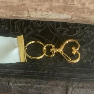 Elegant Dior key and card holder. Rich red color with gold accents. Stylish and functional.
