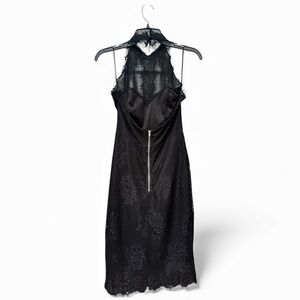 Charlotte Russe Y2K Lace Halter Midi Dress Sweetheart Sheer Detail Size S