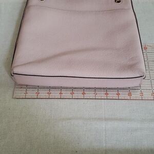 Everly bag in blush pink pebbled leather with goldtone links that glide to accommodate a shoulder bag or crossbody.Large pockets inside including a zipped security pocket.Pocket outside back runs length of body.